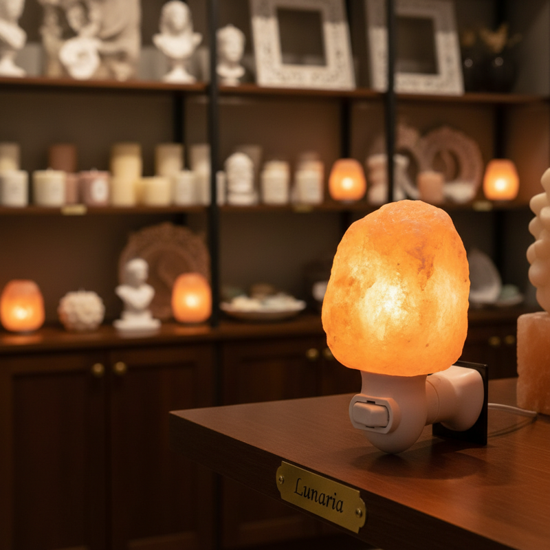 La luce calda e delicata, generata da una potenza interna da 7 W, è adatta a illuminare con discrezione spazi contenuti fino a 5 m², senza disturbare il riposo. Il sale, per sua natura igroscopica, tende ad assorbire l’umidità presente nell’aria; il lieve calore della lampada favorisce un ambiente più equilibrato e piacevole, spesso associato a una sensazione di aria più leggera e pulita.