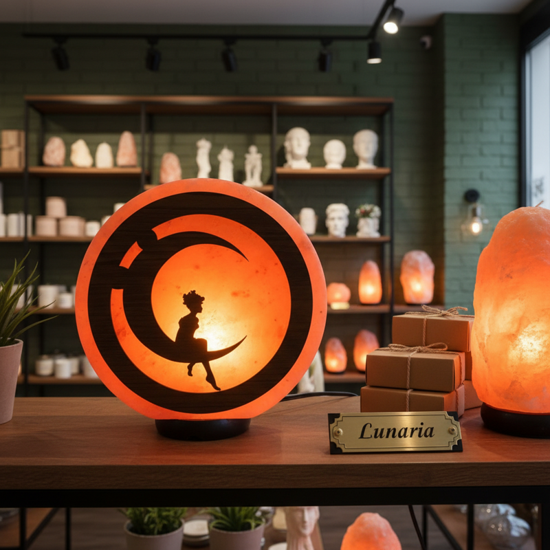 Ogni lampada è un pezzo unico, grazie alle naturali variazioni di venature e sfumature del sale rosa. La sagoma della ragazza sulla luna aggiunge un forte valore evocativo e simbolico, trasformando la lampada in un oggetto decorativo che unisce poesia, luce e benessere. Perfetta per chi cerca un complemento leggero ma significativo, capace di arredare con grazia e ispirare calma.